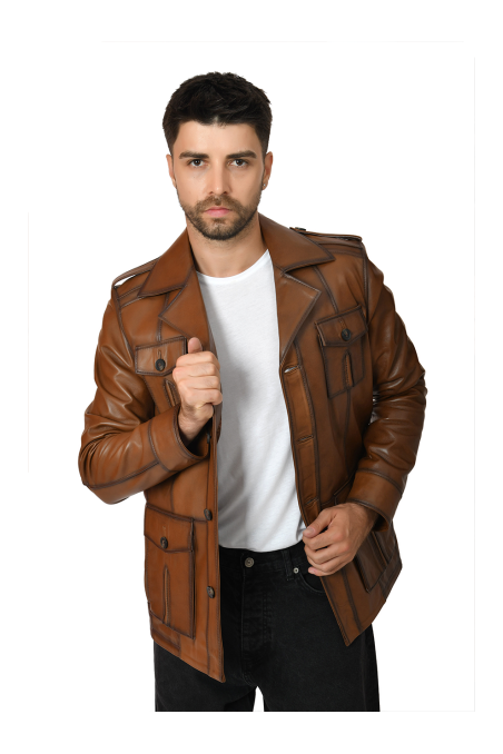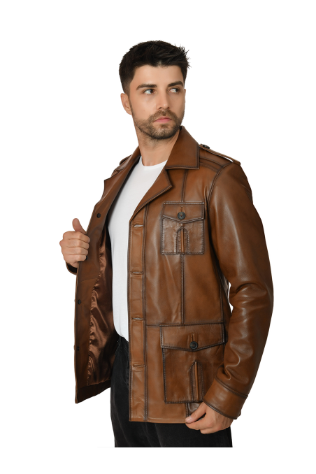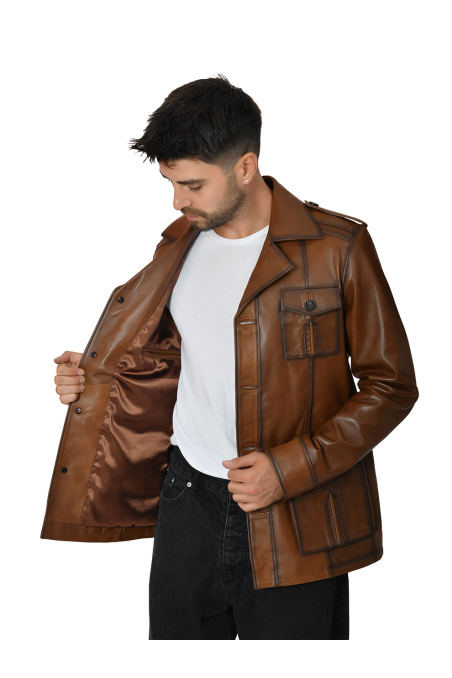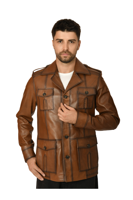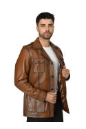 Erkek Hakiki Deri Ceket Kahverengi 6003