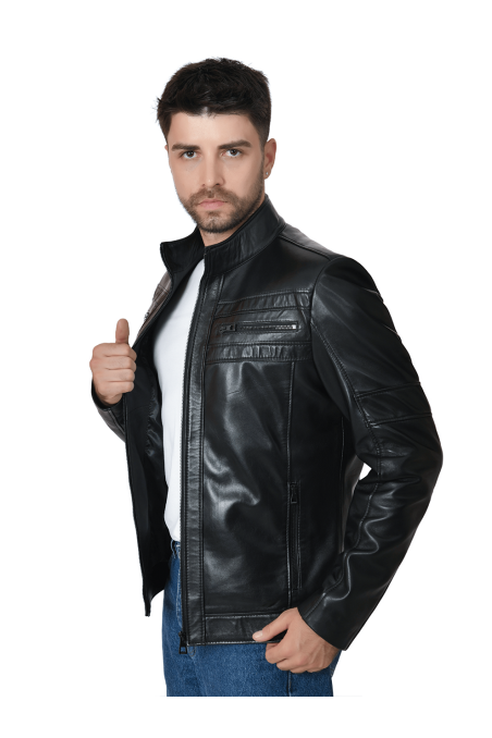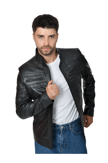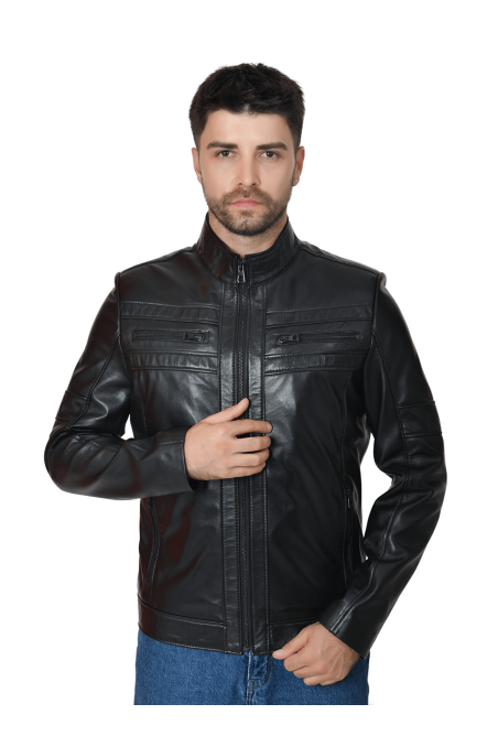 Erkek Hakiki Deri Ceket Siyah 2121 V2