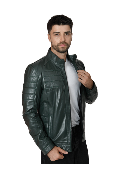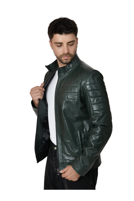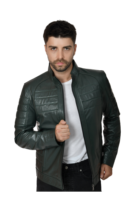 Erkek Hakiki Deri Ceket Yeşil 3021SPR